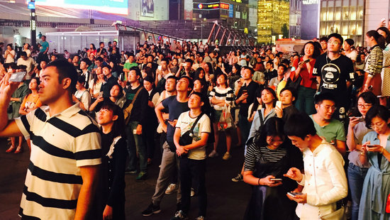 今晚的成都注定不平凡!繁華中心“春熙路”驚現(xiàn)多年罕見的萬人聚集壯觀!無數(shù)成都人的目光都聚集到這里,現(xiàn)場人山人海,更一度造成道路擁堵。