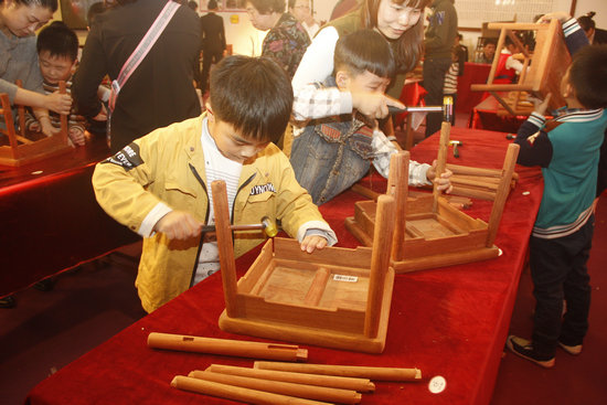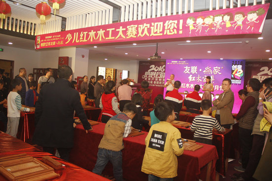 19日下午,創(chuàng)意12月——友聯(lián)為家少兒紅木木工大賽歡樂開展,來(lái)自深圳及周邊城市的幾十組家庭參加了比賽。據(jù)悉,此賽事由龍華新區(qū)文產(chǎn)辦、文化創(chuàng)意十二月組委會(huì)主辦,深圳紅木文化藝術(shù)協(xié)會(huì)、香港祥利集團(tuán)、深圳紅木家具博物館協(xié)辦,旨在培養(yǎng)少兒對(duì)中國(guó)傳統(tǒng)家具的熱愛、提升小朋友的動(dòng)手能力,增進(jìn)孩子與家長(zhǎng)的互動(dòng)。