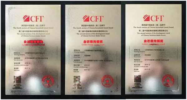 經(jīng)過長(zhǎng)達(dá)兩個(gè)月的網(wǎng)絡(luò)投票以及組委會(huì)的多方評(píng)選,紫翔龍憑借優(yōu)質(zhì)的口碑和杰出的品質(zhì),成功榮膺“金芒果·2016中國(guó)家具行業(yè)年度十佳原創(chuàng)品牌”、"金芒果·2016中國(guó)家具行業(yè)年度十大品牌(新古典/新中式)"和"金芒果·2016中國(guó)家具行業(yè)年度誠(chéng)信企業(yè)獎(jiǎng)"三項(xiàng)大獎(jiǎng)。這是榮譽(yù),更是激勵(lì)!
