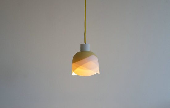 緩慢旋動模具,調(diào)整角度,泥漿在模具內(nèi)壁表面不同的位置凝結(jié);高溫?zé)?,陶瓷肌理層層分明?ldquo;舞動的燈”在燈光的透射下,仿佛如搖曳的裙擺,讓平靜的生活舞動起來。