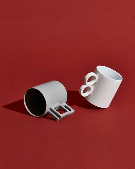 Aandersson雕塑裝飾的馬克杯系列 Shapes Collection之一,采用優(yōu)質(zhì)陶土燒制而成,一部分保留了磨砂效果,另一部分則上有光滑的釉面。五款馬克杯的手柄各不相同,呈現(xiàn)出簡潔利落的幾何美。在色彩上也只用了最為普通的白、灰和陶土的原色,來突出每件作品的特殊形狀。