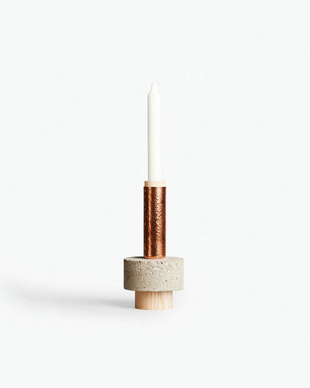 New Works的設計師David Taylor將水泥、木頭、鋁和銅這些材料,全部結合在這款燭臺上,使它不僅僅是一只燭臺,而更像是一件微縮的藝術裝置。他對于不同材料的大膽試驗,在設計品上不僅注重實用度,在視覺上充滿新穎與創(chuàng)意,也造就了設計與藝術的終極碰撞。