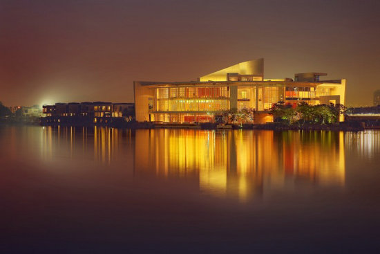 華僑城華會所,是享有“白色騎士”美譽的世界建筑巨匠理查德•邁耶擔綱設(shè)計的,這也是他在中國深圳完成的首個項目。坐落在華僑城濕地的歡樂海岸海心島上,周圍是大片的水域和蔥翠的花園。隔岸而視,華會所在微亮的天幕下,借著星辰的光芒,在水中倒映著。只一抹倒影,隨漣漪微泛,泛出傾城的靜美。