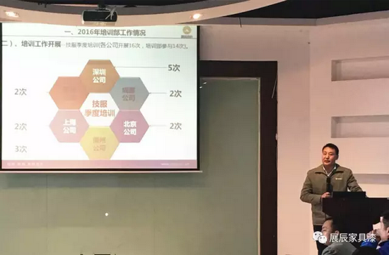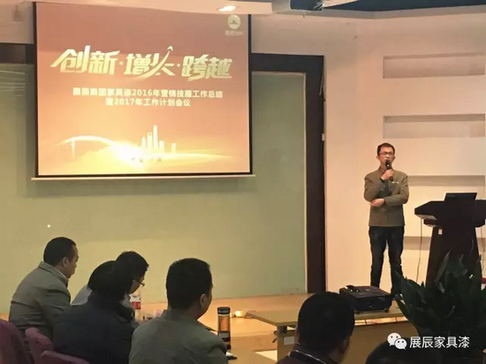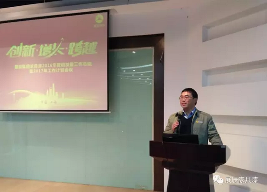 頒獎環(huán)節(jié)后,家營服務(wù)中心總經(jīng)理黃少車就2017年?duì)I銷服務(wù)工作的開展進(jìn)行了全面部署。黃總強(qiáng)調(diào):2017年是展辰集團(tuán)快速發(fā)展極其重要的一年,要求家具漆各分公司及銷售部門務(wù)必本著“兵貴首勝開季紅,步步咬緊全年贏;春江水暖我先知,不達(dá)目標(biāo)誓不還”的工作準(zhǔn)則與精神,確保實(shí)現(xiàn)陳冰董事長提出的“更高、更快、更強(qiáng)”的發(fā)展目標(biāo)。