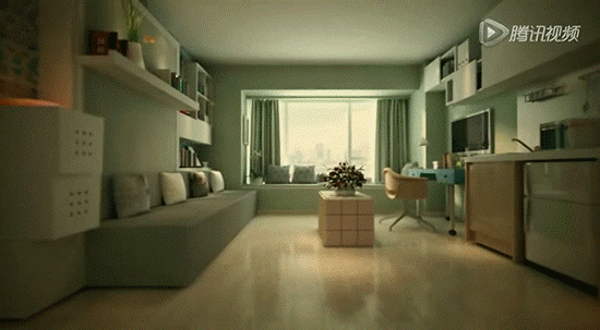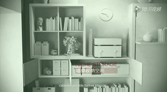 超級儲物柜,在推拉翻轉(zhuǎn)之間,變出一個個辦公、影院空間;