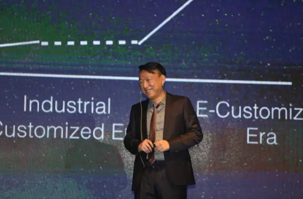 在霸氣十足的宣傳片后,鏈?zhǔn)坛莿?chuàng)始人楊加強(qiáng)先生翩翩上臺(tái)用流利的雙語(yǔ)演講征服全場(chǎng)。