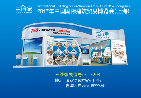 2017年第二十二屆中國(guó)國(guó)際建筑貿(mào)易博覽會(huì)(上海建博會(huì))在滬隆重舉行,南北商家齊聚上海灘對(duì)話定制新勢(shì)力,3月虹橋?qū)⑸涎?ldquo;定制狂潮”。三維家作為助力家居、建材行業(yè)快速發(fā)展的IT服務(wù)商又怎么會(huì)缺席這一國(guó)際盛會(huì),國(guó)家會(huì)展中心 3.1E203展位恭候您的到來(lái)。