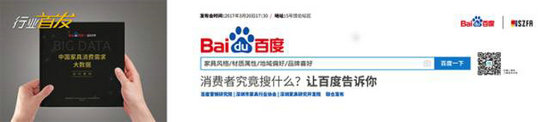 3月20日下午,2017深圳時尚家居設計周暨第32屆深圳國際家具展上,由深圳市家具行業(yè)協(xié)會與百度聯(lián)合主辦的“中國家具消費需求大數(shù)據(jù)發(fā)布會”如期舉行,萬眾期待的行業(yè)首發(fā)在深圳家具研究開發(fā)院院長許柏鳴、深圳市家具行業(yè)協(xié)會副秘書長劉瑞貞、百度(中國)有限公司深圳分公司總經(jīng)理張作誠、百度整合營銷策劃部總監(jiān)馮文振等嘉賓與現(xiàn)場觀眾的見證下正式發(fā)布。
