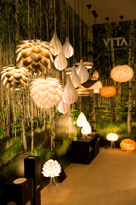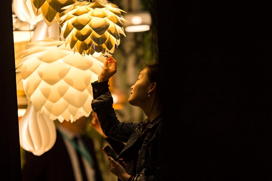 北歐家居風(fēng)格之所以能夠流行的原因之一就是它充滿了對(duì)細(xì)節(jié)的用心和注重提升使用體驗(yàn)。在時(shí)尚燈飾品牌Vita的展位上,可以看到純白色的各式吊燈高低錯(cuò)落地懸掛著,柔和的燈光透過白色的燈罩,營(yíng)造了一種讓人感到舒適的溫暖感。