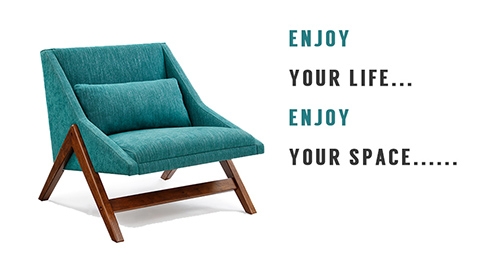 INK+IVY設(shè)計(jì)師將木色均勻的橡膠木椅腿設(shè)計(jì)成90度直角的結(jié)構(gòu),與地面形成三角,側(cè)面看成為一個(gè)回飛棒形狀,加長(zhǎng)加大的椅面配上腰枕設(shè)計(jì),良好的包容性承載恣意變換的坐姿,輕巧又穩(wěn)固。椅面高飽和度孔雀綠,穩(wěn)穩(wěn)置于空間一角,吸引感官。
