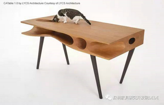 所有鏟屎官(寵物主人)都知道它們最喜歡在鍵盤上伸展身軀以此消遣,而主人卻是要在電腦上工作的。郝阮(音),一位來自中國杭州LYCS建筑事務(wù)所的設(shè)計(jì)師,想出了一個(gè)應(yīng)對(duì)措施,也就是上圖所呈現(xiàn)的“貓桌游樂場(chǎng)”,有了它,鏟屎官們終于可以安心工作了。這個(gè)設(shè)計(jì)是全實(shí)木的,手工制造。功能方面一目了然,由很多隧道、開口,讓貓咪們?cè)谏厦娉浞值匦D(zhuǎn)跳躍,以此分散它們?cè)谵k公桌上的注意力。于是乎,貓咪和主人能夠和平共處一室了。
