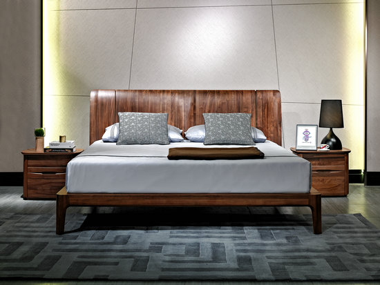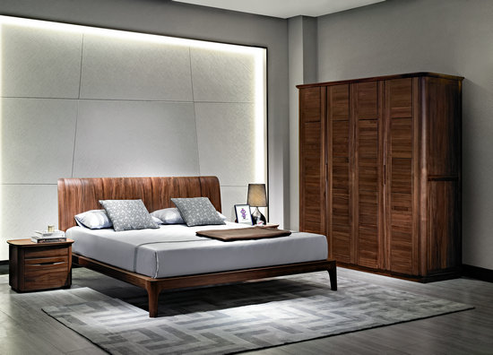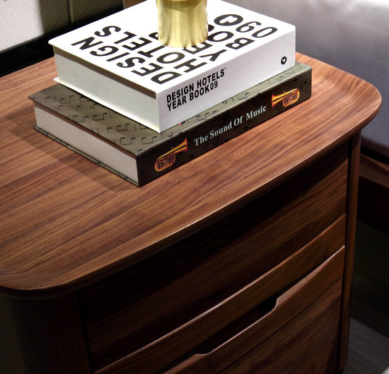這個系列整體感很強,風(fēng)格沉穩(wěn)大氣,材質(zhì)看似單一地使用了胡桃木,但是我認(rèn)為這個系列的優(yōu)點恰恰在于材質(zhì)的單一性,胡桃木的天然木紋非常漂亮,大面積的板面把這種材質(zhì)天然之美很好地呈現(xiàn)出來了,而且設(shè)計里有一些很漂亮的小弧面細節(jié)(如床背板),讓整個設(shè)計顯得更有內(nèi)容,更有細節(jié)感。