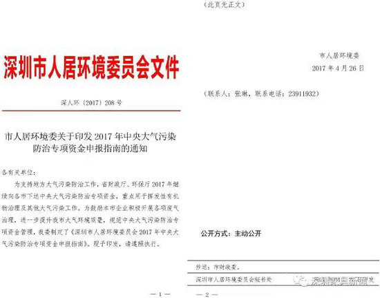 為支持地方大氣污染防治工作,省財(cái)政廳、環(huán)保廳2017 年繼續(xù)向各市下達(dá)中央大氣污染防治專項(xiàng)資金,重點(diǎn)用于揮發(fā)性有機(jī)物治理及其他大氣污染工作。為鼓勵(lì)本市企業(yè)積極開(kāi)展各項(xiàng)廢氣治理,進(jìn)一步提升我市大氣環(huán)境質(zhì)量,規(guī)范中央大氣污染防治專項(xiàng)資金管理,我委制定了《深圳市人居環(huán)境委員會(huì)2017 年中央大氣污染防治專項(xiàng)資金申報(bào)指南》?,F(xiàn)予印發(fā),請(qǐng)遵照?qǐng)?zhí)行。