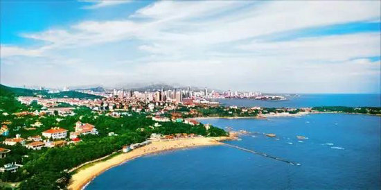 “說(shuō)也奇怪,五月的海就仿佛特別的綠……看一眼路旁的綠葉,再看一眼海……這才明白了什么叫做‘春深似海’。綠,鮮綠,淺綠,深綠,黃綠,灰綠,各種的綠色,聯(lián)接著,交錯(cuò)著,變化著,波動(dòng)著,一直綠到天邊,綠到山腳,綠到漁帆的外邊去……生機(jī)無(wú)限……”(老舍散文《五月的青島》,1937年)