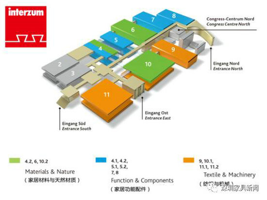 ▲今年的interzum展進(jìn)行了擴(kuò)容,共規(guī)劃11個(gè)展館,主要分為家居材料與天然材質(zhì)、家居功能配件、紡織與機(jī)械三大展區(qū),涉及品類之廣位居所有同類展會之首