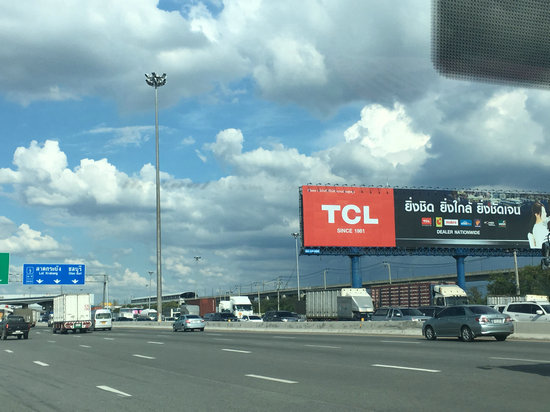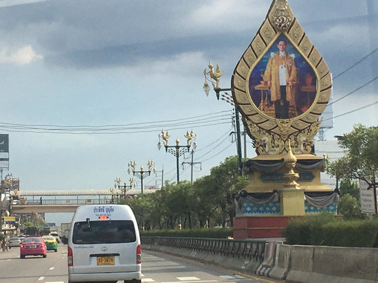 泰國是一個佛教國家,故國民大都虔誠老實,正值國喪期間,處處體現(xiàn)了對已故老國王普密蓬的敬意和思念。清澈的天空讓人神清氣爽,中國品牌在泰國大行其道,路邊多巨大無比的廣告牌,雖在異國他鄉(xiāng),心里也是很溫暖的。