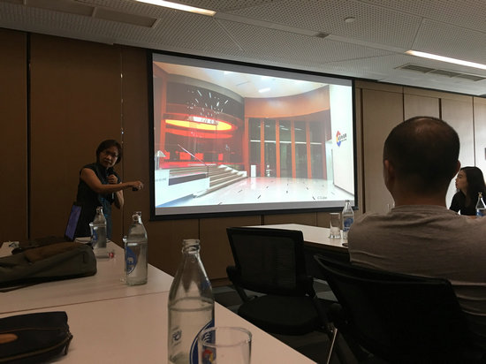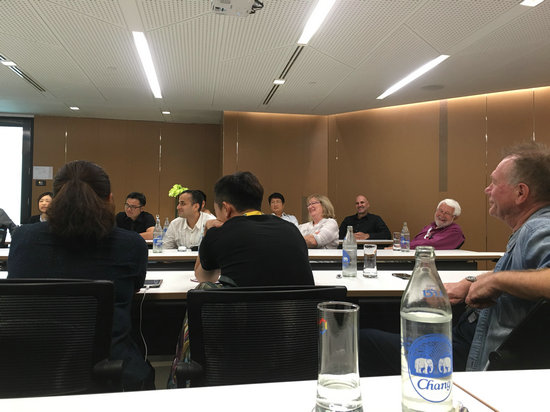 圖:在會員企業(yè)參訪學習的場景,國際化的交流氣氛非?;钴S(圖由神話定制照明提供)