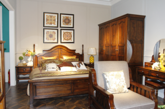除了展位設(shè)計(jì)獨(dú)具一格,王牌產(chǎn)品才是都市王朝本次參展的最大亮點(diǎn)。據(jù)徐紅松介紹,本次參展的實(shí)木品牌之一木克莊園是都市王朝聯(lián)合國(guó)內(nèi)幾家在家具設(shè)計(jì)行業(yè)中具有很強(qiáng)影響力的設(shè)計(jì)公司聯(lián)合打造的一個(gè)高端實(shí)木品牌,產(chǎn)品采用100%全進(jìn)口高端木材打造,品牌產(chǎn)品走的是時(shí)尚、奢華路線,在產(chǎn)品風(fēng)格設(shè)計(jì)、軟裝設(shè)計(jì)上把實(shí)木家具的穩(wěn)重、奢華加上了現(xiàn)代、時(shí)尚的元素,旨在給消費(fèi)者打造一個(gè)時(shí)尚、現(xiàn)代、簡(jiǎn)約、奢華、生態(tài)、環(huán)保的家居環(huán)境。都市王朝也一直將打造中國(guó)時(shí)尚實(shí)木家具第一品牌作為該品牌的發(fā)展訴求。