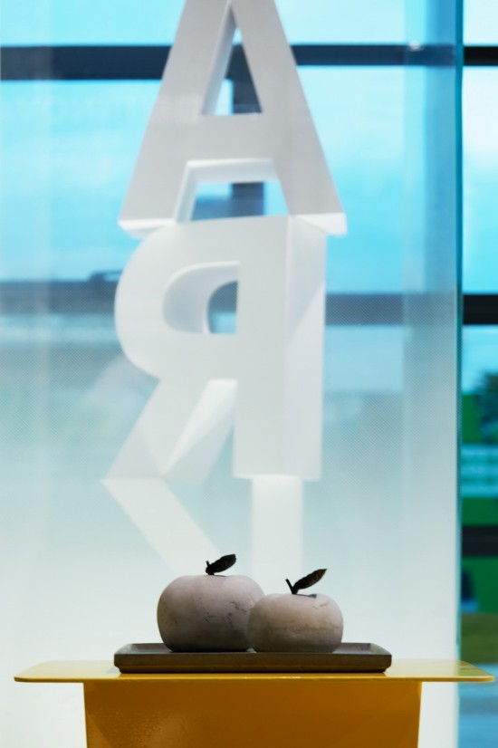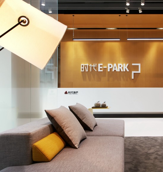 落地玻璃也室外景色無縫連接,細看玻璃上還有英文字母的水印,E-PARK的字母組合成柱狀,不統(tǒng)一的朝向展現(xiàn)自由意味。