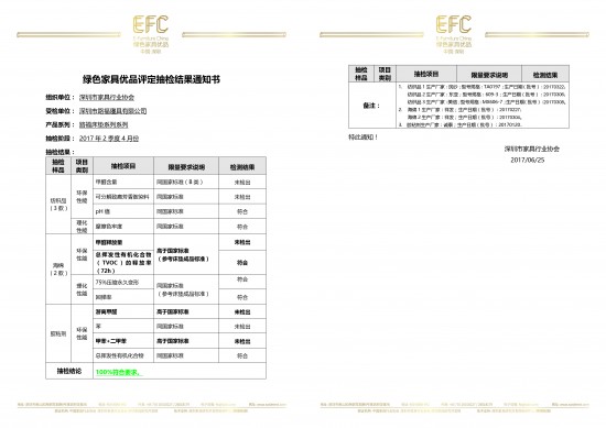 6月25日,深圳市家具行業(yè)協(xié)會監(jiān)測中心(賽德檢測)針對“中國綠色家具優(yōu)品”第二批獲證企業(yè)——路福寢具第二季度4月份的抽檢工作正式結(jié)束。作為德國寢具品牌,路福寢具再次以100%合格率遙遙領(lǐng)先。