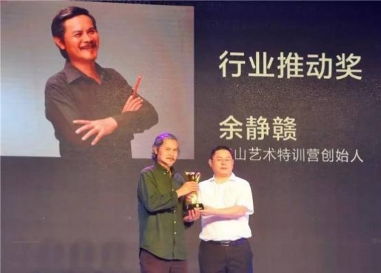 全國工商聯(lián)家具裝飾業(yè)商會執(zhí)行會長張傳喜為余靜贛(左)頒獎