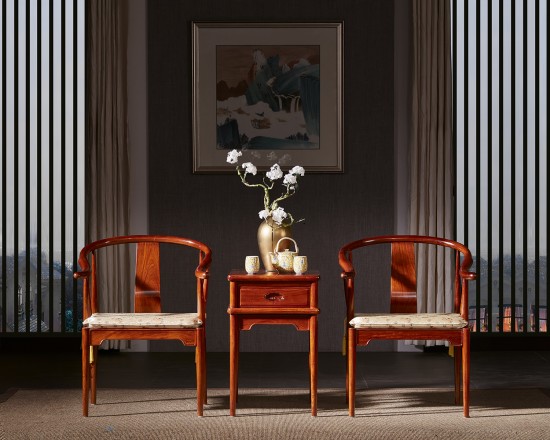 通過打磨、拋光、生漆等工藝充分表現(xiàn)紅木材料的色彩和肌理。天然細(xì)膩的木紋賦予了紅木家具純正質(zhì)樸、簡(jiǎn)潔明快、線條流暢的藝術(shù)品性和審美感受,注入了淳厚的人文氣質(zhì)。沿用方正對(duì)稱或圓形的結(jié)構(gòu)彰顯獨(dú)特的中式文化,而精密的榫卯結(jié)構(gòu)和賦予了文化含義的精致雕花令中式韻味更加顯著。