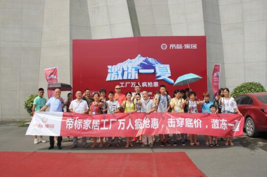 7月15日,帝標家居以“激凍一夏——工廠萬人瘋搶惠”為主題的大型工廠團購活動在帝標家居工廠總部展廳火爆開搶。本次活動上,帝標家居以“夏不為利”的冰點特價讓消費者享受了一場抄底大狂歡?;顒游齺碜愿鞯氐纳先f名消費者“搶工廠”,當天可觀的成交額,引起了行業(yè)內(nèi)外的廣泛關(guān)注。
