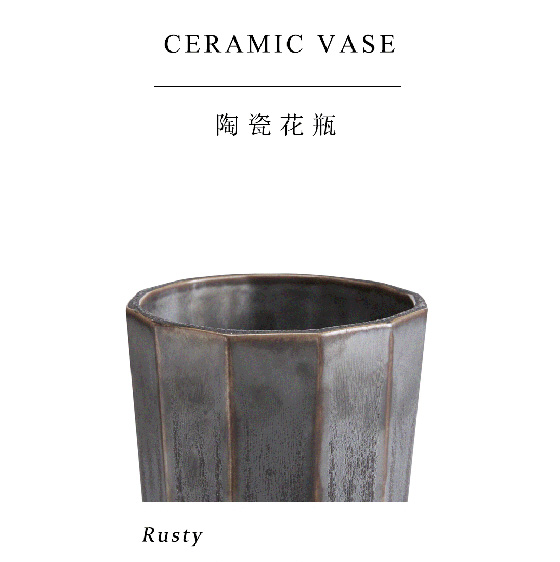 Rusty楞面幾何花瓶系列,采用炻瓷材質(zhì),施以深沉卻富有變化的釉色,帶有棱角的硬朗造型與獨特的金屬感相碰撞,質(zhì)感粗礪淳厚。
