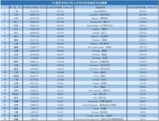 國是直通車根據(jù)世界銀行公布的2016年各國GDP總量,經(jīng)過間接換算,帶大家看看你的家鄉(xiāng)與相當于哪個國家?
