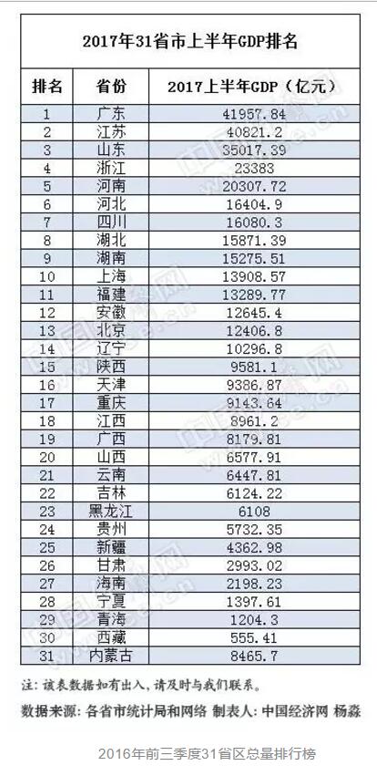 從31省市上半年GDP數(shù)值變化來看,前三名全部為東部沿海地區(qū),分別是廣東、江蘇、山東,上半年GDP總額為41957.84億元、40821.2億元、35017.39億元。
