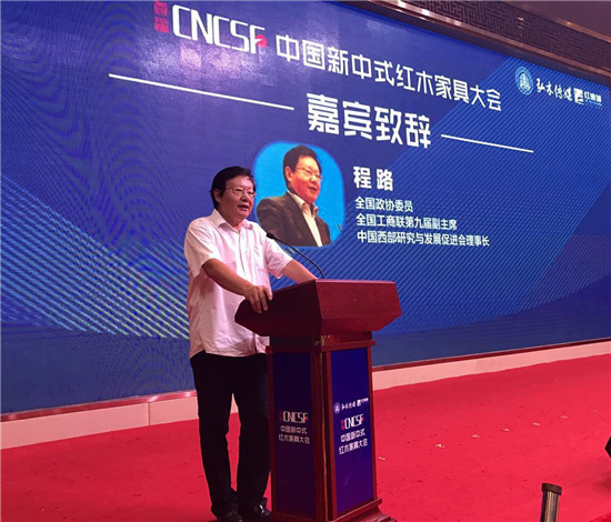 大會現(xiàn)場還迎來了一位重量級嘉賓,他就是全國政協(xié)委員、全國工商聯(lián)第九屆副主席、中國西部研究與發(fā)展促進(jìn)會理事長程路。程路主席指出,在全球一體化與文化多元化的當(dāng)下,新中式家具要留住傳統(tǒng)、守住文化,同時與時俱進(jìn),不斷創(chuàng)新,成為具有時代特色的中國家具。