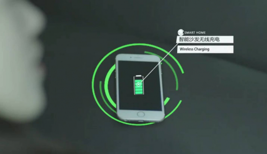 智能沙發(fā)、床頭柜正在給手機(jī)無線充電;