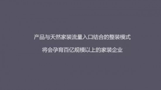 家裝企業(yè)在整個(gè)大家居產(chǎn)業(yè)里面是集聚價(jià)值的,價(jià)值如何更好挖掘出來,和產(chǎn)品型的公司充分聯(lián)合,挖掘這波流量紅利。產(chǎn)品是天然與家裝流量入口結(jié)合的整裝模式,將會(huì)孕育出百億規(guī)模以上的家裝企業(yè)。