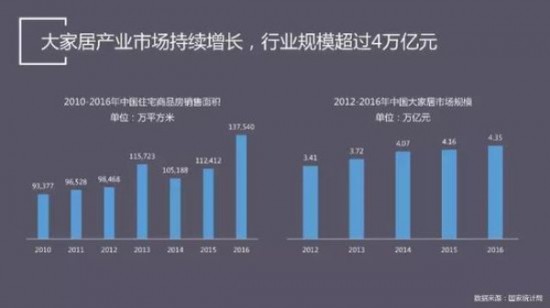 大家居產(chǎn)業(yè)是規(guī)模巨大的產(chǎn)業(yè),到2016年行業(yè)總產(chǎn)值已突破4萬億,行業(yè)穩(wěn)健的增長。