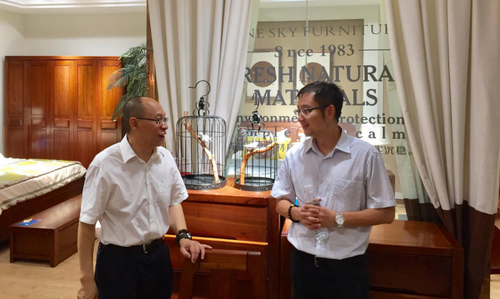 中國家具協(xié)會陳寶光與九天家私總經(jīng)理丁際文親切交流