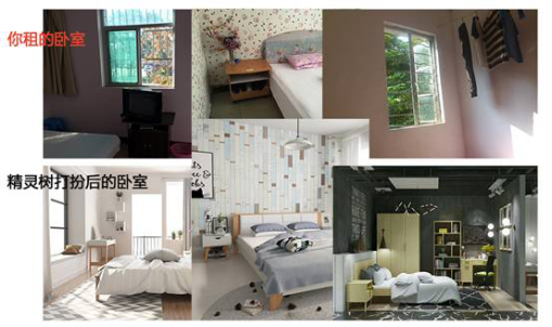 破舊的出租屋與精靈樹效果圖臥室部分對比