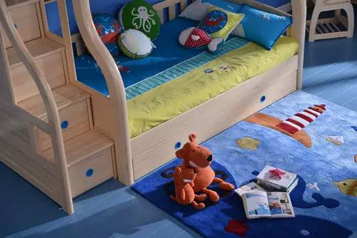 外觀很普通,但是功能性很好。趣味性的梯子可以收納許多兒童的心愛(ài)之物;下鋪的大抽屜,可以當(dāng)床也可以當(dāng)收納使用,非常節(jié)省空間。拉手設(shè)計(jì)起到較好的裝飾作用,藍(lán)色清爽明快。整個(gè)床采用原木色,親近自然,環(huán)保美觀。床的設(shè)計(jì)很牢固,四周設(shè)計(jì)保護(hù)的很到位,給孩子用很放心。