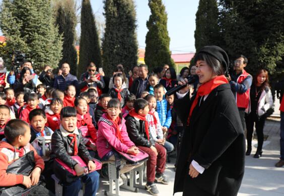 讓樂陶山小學(xué)的孩子們感到更為驚喜的是,除了捐建圓夢教室外,宏耐還邀請了中國好聲音人氣學(xué)員,也是宏耐美育圓夢的愛心大使唐寧來到了現(xiàn)場,為大家上了一堂“明星音樂課”。