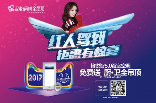 11月10日到26日,在品格指定活動(dòng)門店,買銳智5.0浴室空調(diào)滿3980元即送廚、衛(wèi)全吊頂!