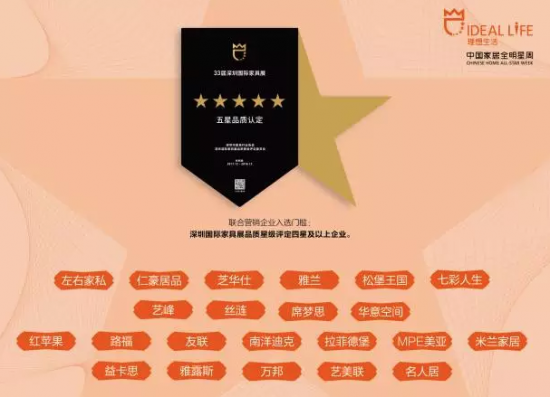 首屆“理想生活中國(guó)家居全明星周”以獲得“星級(jí)評(píng)定”四星及以上標(biāo)準(zhǔn)的企業(yè)為參與企業(yè)的入選標(biāo)準(zhǔn),從根本上保證了此次聯(lián)合營(yíng)銷活動(dòng)參與企業(yè)、品牌及產(chǎn)品的高品質(zhì)、高質(zhì)量。