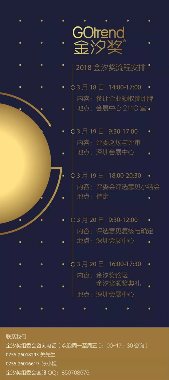GOtrend 金汐獎(jiǎng)是于設(shè)計(jì)之都深圳發(fā)起的家居設(shè)計(jì)領(lǐng)域?qū)I(yè)獎(jiǎng)項(xiàng),是深圳時(shí)尚家居設(shè)計(jì)周暨深圳國際家具展鼓勵(lì)參展企業(yè)設(shè)計(jì)創(chuàng)新的一個(gè)榮譽(yù)平臺(tái),理念為“激發(fā)創(chuàng)新、獎(jiǎng)勵(lì)創(chuàng)新和傳播創(chuàng)新”。該獎(jiǎng)項(xiàng)每年評(píng)定一次,由深圳市家具行業(yè)協(xié)會(huì)與深圳家具研究開發(fā)院組織家具及設(shè)計(jì)界專家學(xué)者和著名設(shè)計(jì)師擔(dān)任評(píng)委,對(duì)參賽作品的開發(fā)理念、創(chuàng)新水平、設(shè)計(jì)表現(xiàn)等指標(biāo)進(jìn)行綜合評(píng)定后,評(píng)選出本年度優(yōu)秀作品。