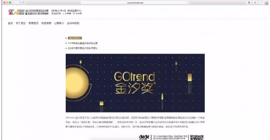 方式3:進(jìn)入深圳國際家具展官網(wǎng),下拉點(diǎn)擊“金汐獎(jiǎng)”模塊進(jìn)入報(bào)名頁面。