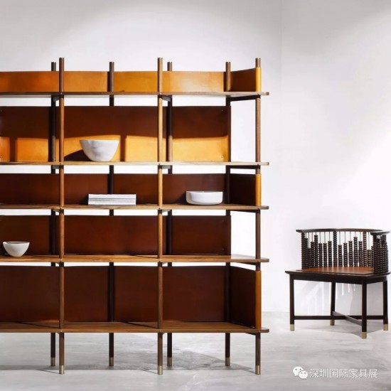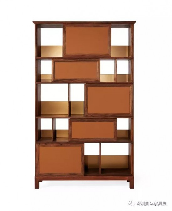 這款博古架叫“魔方”,它的趟板可以滑動,布置與物品搭配可按主人的口味變化,讓這些布置在空間里挑動活潑趣味的效果。而板塊的大小不規(guī)則,很有現(xiàn)代藝術(shù)感。半鏤空的設(shè)計(jì)使整個(gè)架子多了一些輕盈的美感,皮和金屬與木的混搭顛覆了傳統(tǒng)木架的刻板枯燥感。