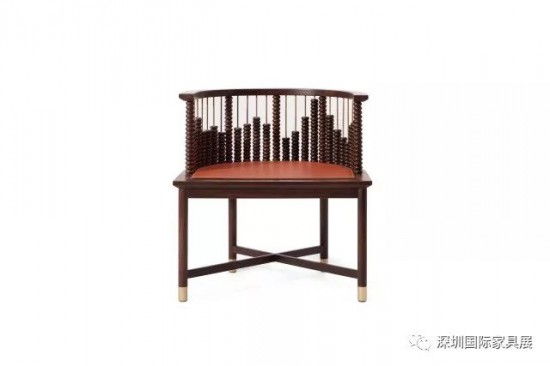 “算椅”是歲集的一個(gè)早期作品,有強(qiáng)烈的藝術(shù)裝置特性,也是歲集家具中最富有傳統(tǒng)中式味道的個(gè)別之一。黑檀木構(gòu)筑成明式椅子的造型,坐墊處貼上服帖精致的真皮皮面,,座腳采用黃銅包裹來裝點(diǎn)。在背靠處裝入一節(jié)一節(jié)的算珠,有強(qiáng)烈的東方符號和裝置藝術(shù)的氣韻。