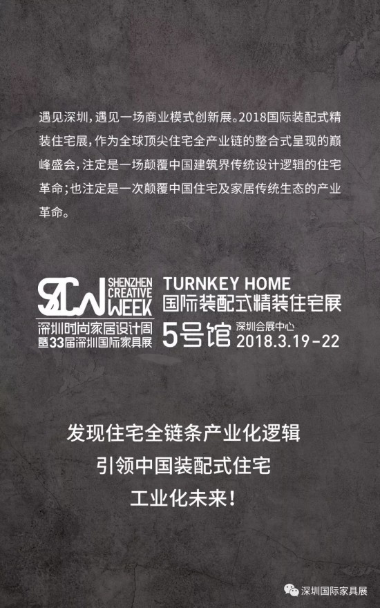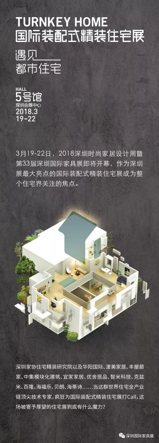3月19-22日,2018深圳時尚家居設計周暨第33屆國際家具展即將開幕,作為深圳展最大亮點的國際裝配式精裝住宅展成為整個住宅屆關注的焦點。