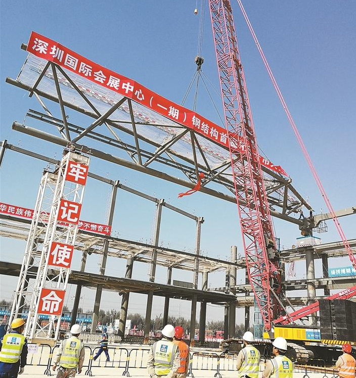 去年12月,深圳國際會(huì)展中心首榀鋼桁架開吊儀式舉行。