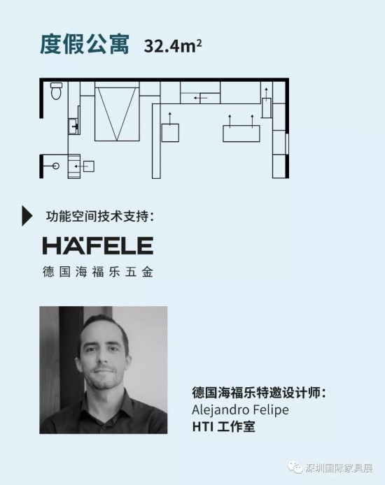 海福樂五金特邀設(shè)計師Alejandro Felipe將為度假公寓設(shè)計提供功能空間技術(shù)支持,通過頂級五金配件實現(xiàn)高靈動的室內(nèi)配置和空間解決,讓極小公寓也有非常棒的居住體驗!