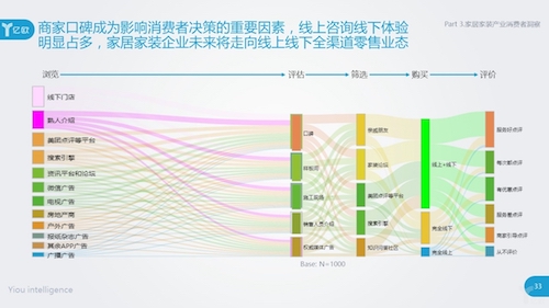 分析發(fā)現(xiàn),平臺化是2017及未來幾年家居家裝產業(yè)發(fā)展主旋律,平臺公司賦能家居家裝企業(yè),為用戶提供一站式家居家裝產品與服務。消費者調查數(shù)據顯示,家居家裝消費者決策路徑長,重視商家口碑,喜歡線上咨詢和線下體驗,關注品質和顏值。據此,億歐智庫認為家居家裝產業(yè)即將迎來新時代——平臺賦能,終端為王。