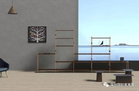 2018深圳家具展上,Lagom Är Bäst也會帶來產品“#正書架”。它由#系列三種金屬連接件三種尺寸木板拼裝而成,大面積使用連接件使之成為產品外觀的一部分。書架格子的大小不一,營造出縱向空間的錯落感。金屬表面電極氧化結合黑胡桃木材整體呈現(xiàn)出大氣的美感