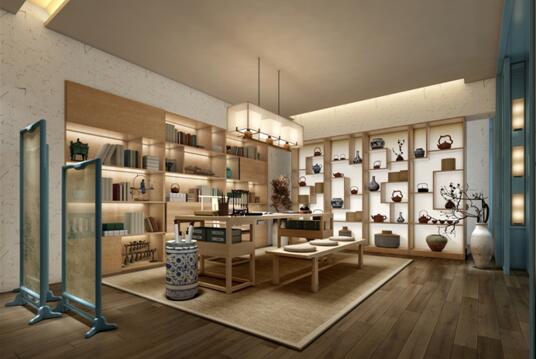 擯棄了傳統(tǒng)中式的黑、紅重色系,以淺木色為主,搭配一些清新、淡雅的顏色,使空間宛如一幅中國淡彩畫。